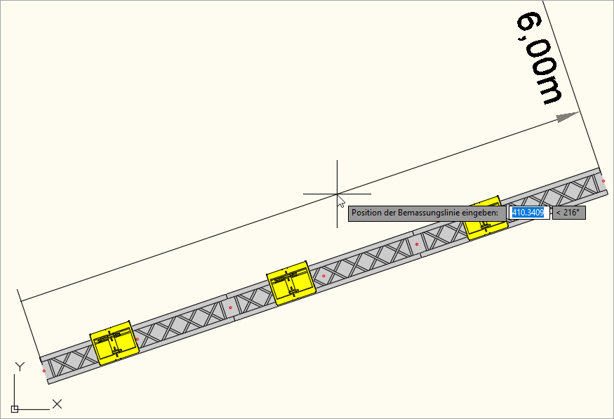 Bei der manuellen forlaufenden Bemaßung müssen die einzelnen Maßpunkt auf der gedachten Bemaßungslinie manuell eingegeben werden. Damit lassen sich fortlaufende Bemaßungen auch für andere Symbole bzw. Abstände auf einer gedachten Bemaßungslinie erstellen.