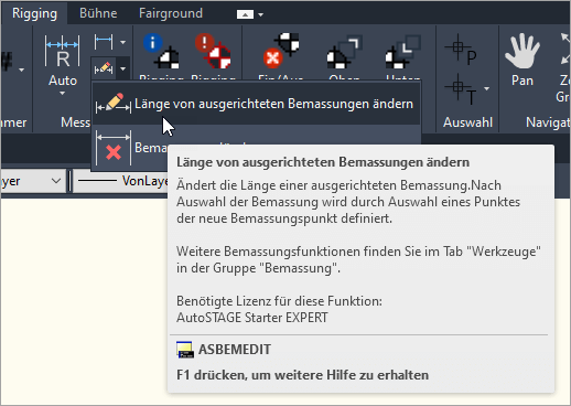 Zum Löschen einer oder mehrere Bemaßungen kann der Befehl ASBEMENTF verwendet werden. Nacheinander können Bemaßungen damit gelöscht werden, die Ausführung muss mit ESC beendet werden.